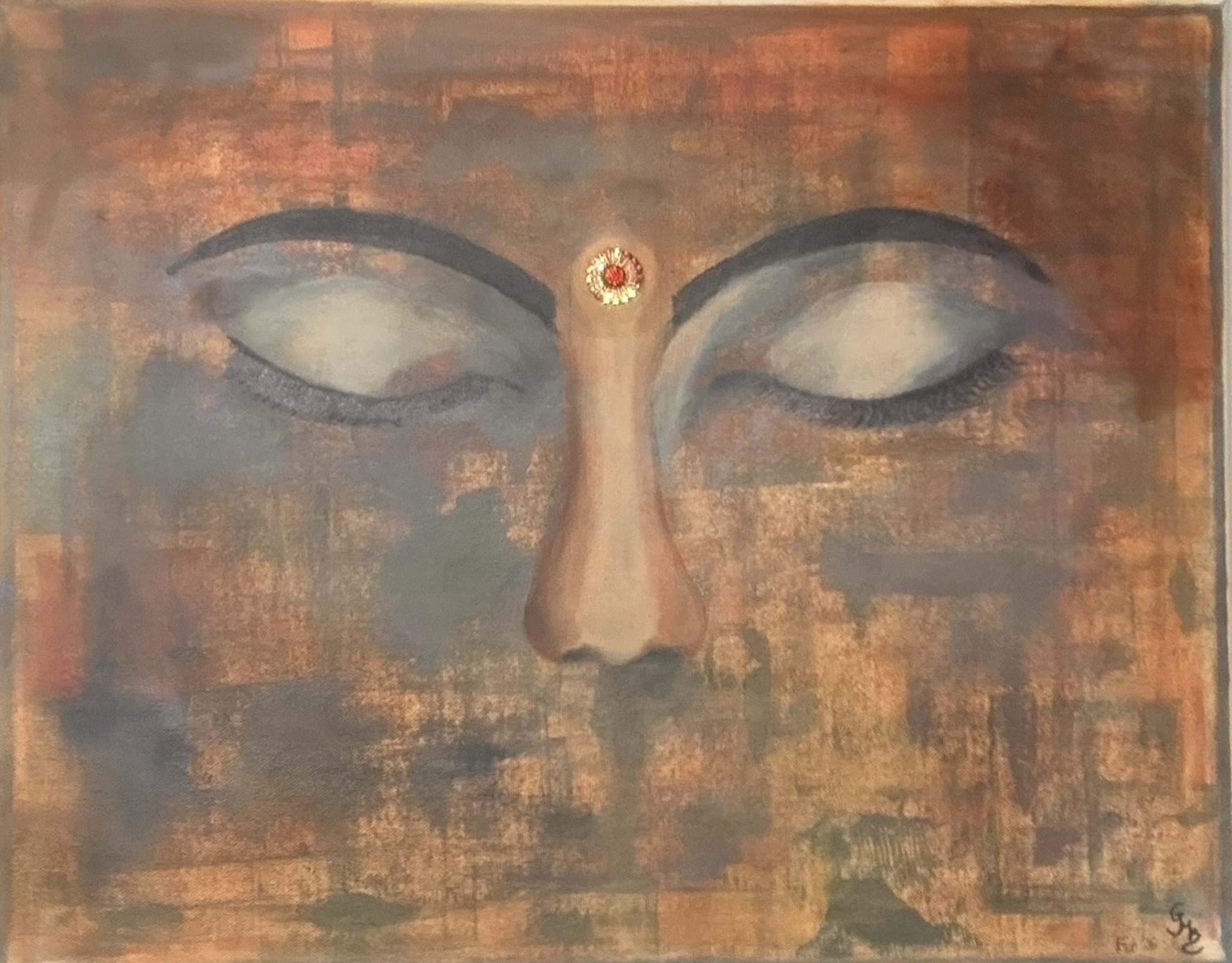 When I sat with painting in stillness, and revisited her over several days, and weeks, I started to understand what she was showing me. Shakti is most often represented with her eyes wide open, yet in my painting they were closed. This puzzled me immensely. Why were her eyes closed?